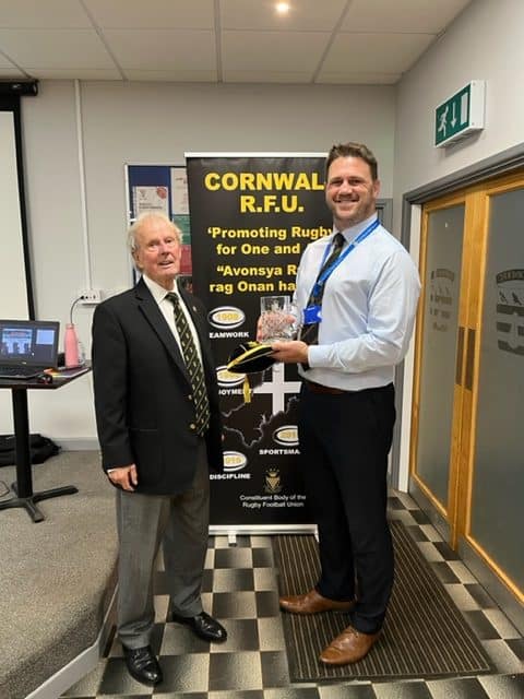 At Wednesday night’s Finance AGM and Club Forum held at Camborne RFC, former Cornwall captain Ben Hilton received Life Membership of the CRFU from President John Sumnall.