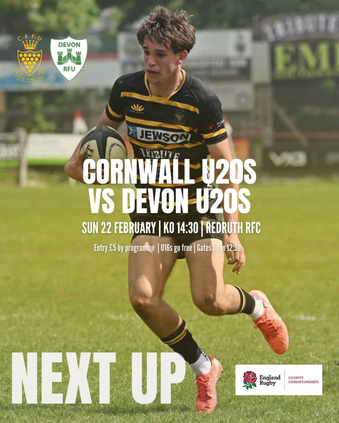 Sun 22nd Feb, Cornwall U.20 v Devon U. 20 @ Redruth RFC 2:30 pm