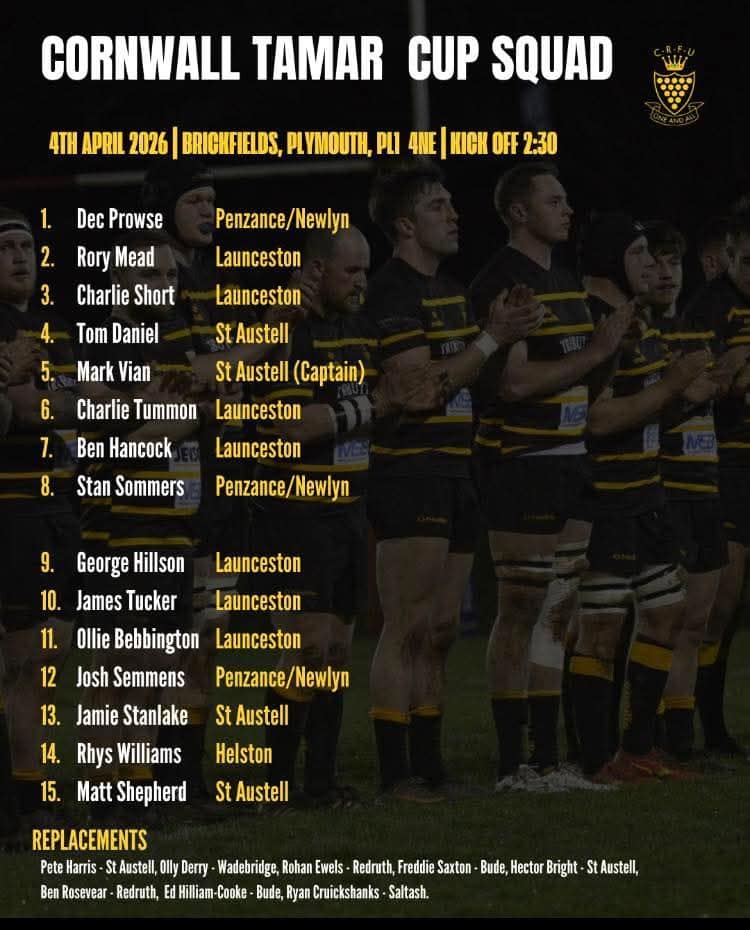 Cornwall selectors have picked a strong squad for Saturday’s Tamar Cup clash at Brickfields, Plymouth Albion RFC, kick-off 2:30 pm.